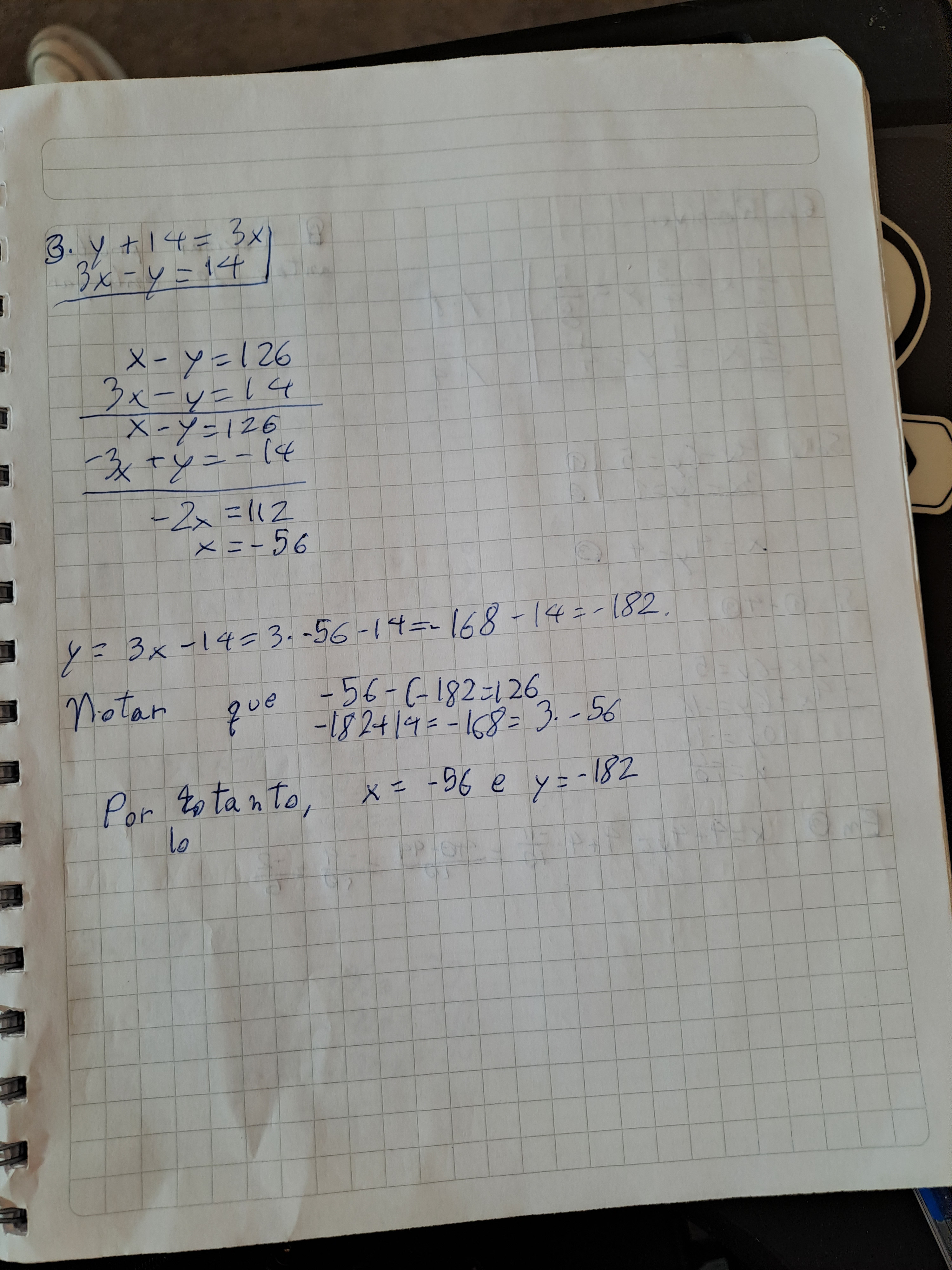 - La diferencia de dos números es 126 y uno de ellos es 14 unidades menor que el triple del otro. ¿Cuales son los números?